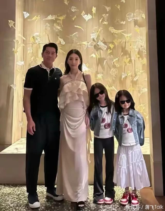郭富城和方媛的两个女儿也被打扮成新中式公主模样, 一个活泼可爱笑容灿烂,一个乖巧懂事十分文静,他的两个女儿都很漂亮。五官精致扎起头发笑起来的模样,一个像爸爸一个像妈妈,他们一家四口的合照由衷地感觉到温馨和幸福。